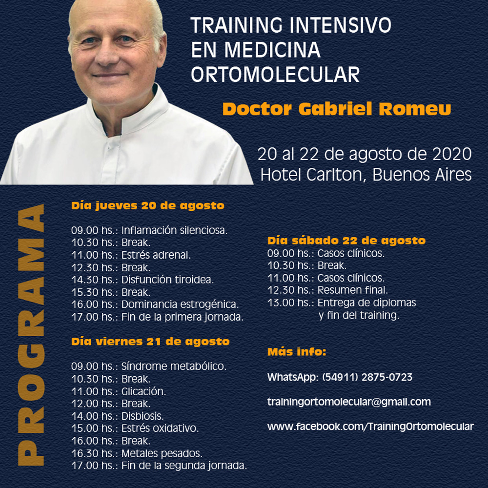 Capacitación: Masterclass Intensiva 2026 en Medicina Orthomolecular y Nutrición Médica. Full inmersion.